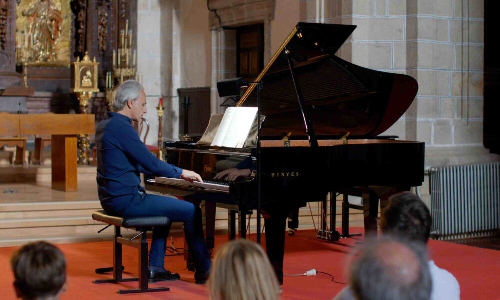 Pedro Halffter Caro volvió al escenario del Festival Música en Villafranca en la iglesia de San Nicolás. En esta nueva cita, Halffter Caro rindió un homenaje a Franz Schubert, continuando la línea romántica con la que comenzó el Festival con su primer concierto de piano.