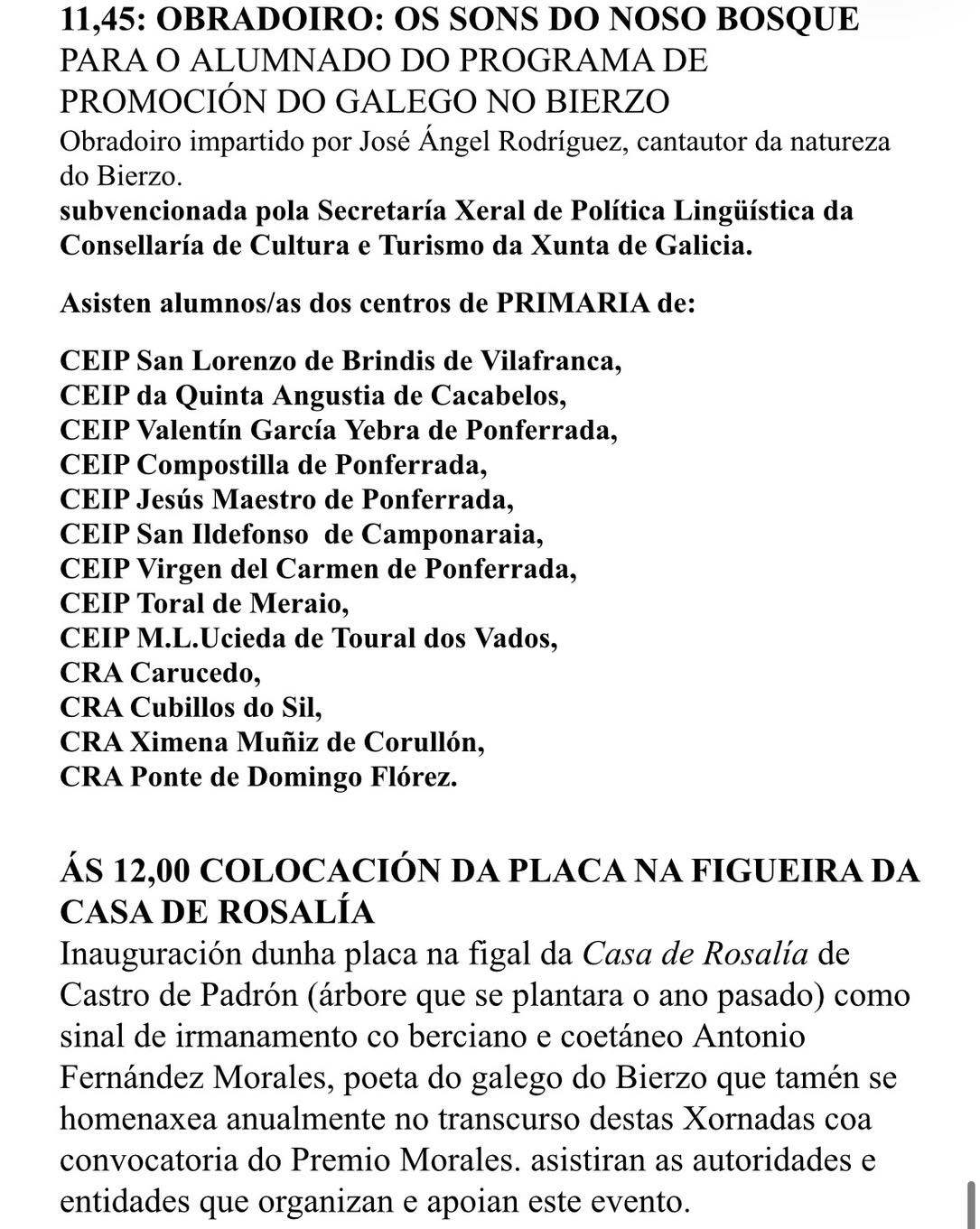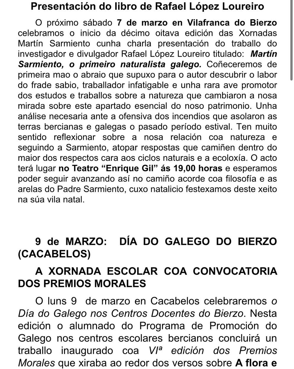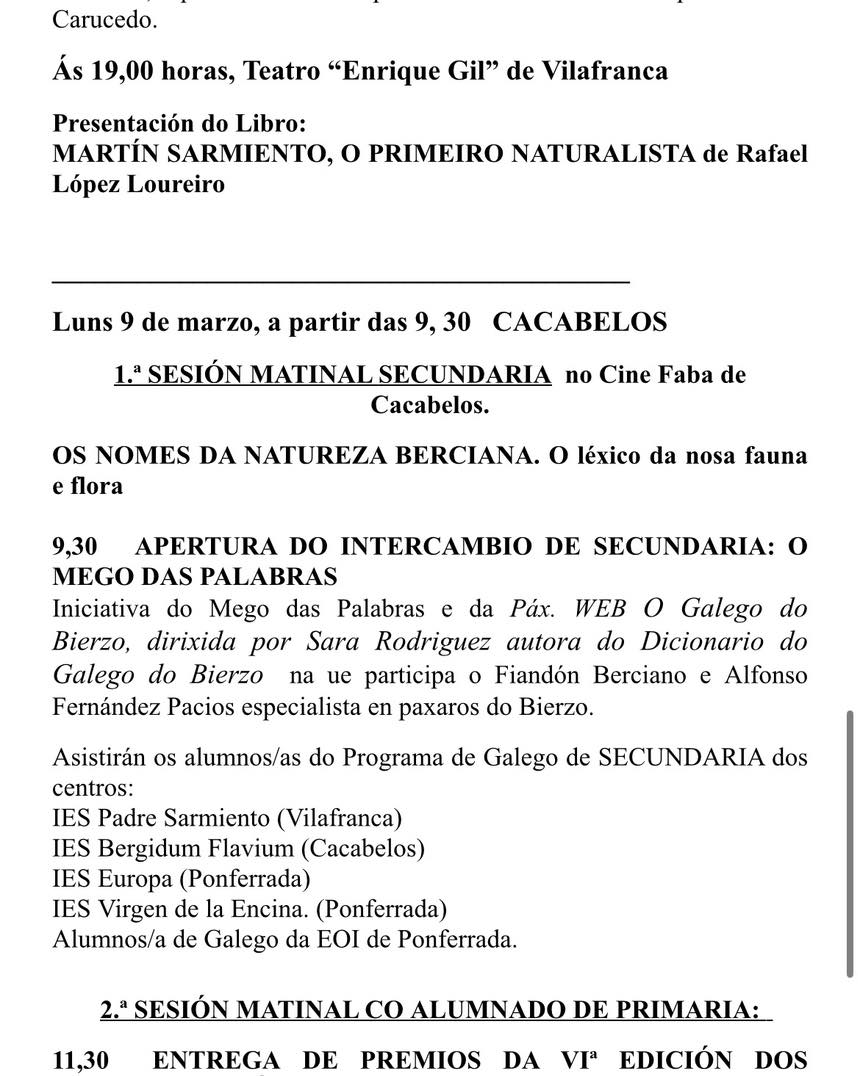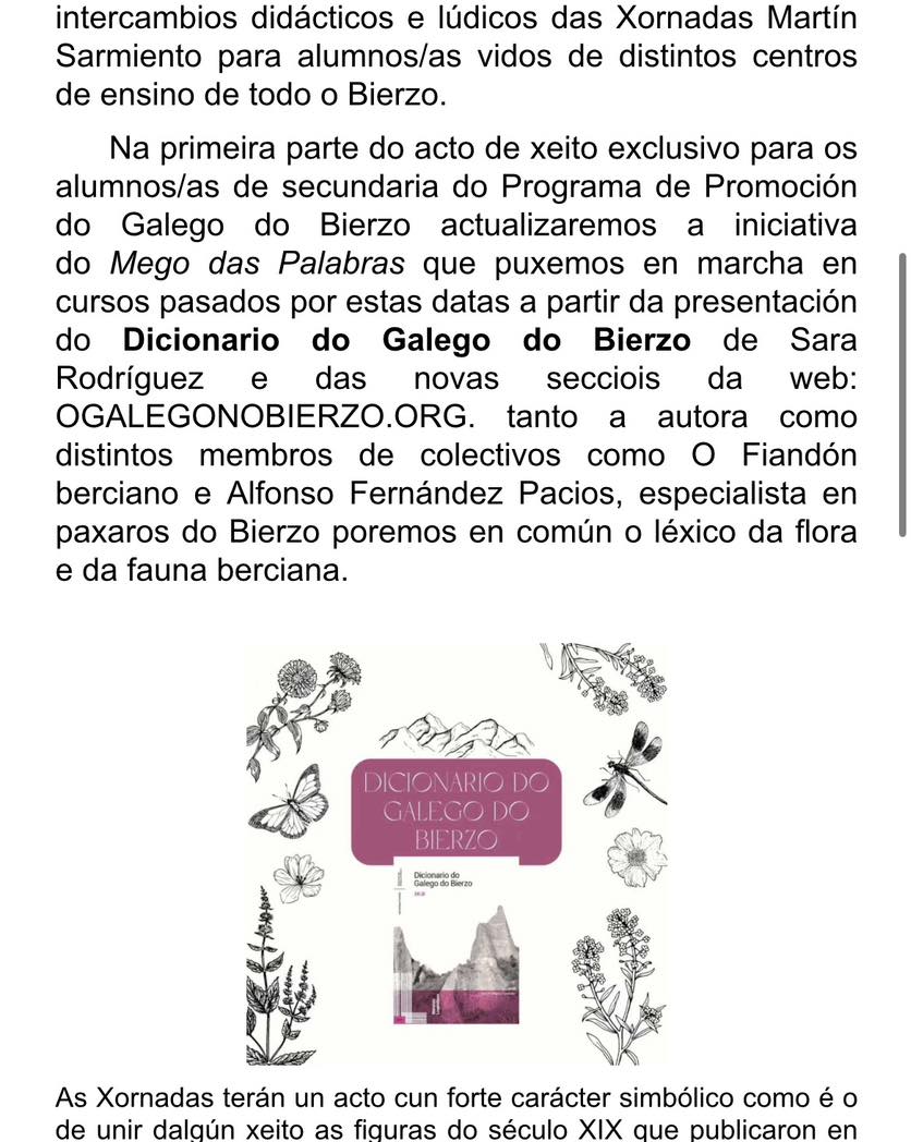 Programación de las XVIII XORNADAS MARTÍN SARMIENTO. Día do Galego do Bierzo.