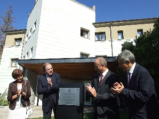 El ministro de Industria y Turismo, Miguel Sebastián, junto con el presidente de la Junta, Juan Vicente Herrera, y el de Paradores, Miguel Martínez, fueron las autoridades encargadas de descubrir la placa inaugural tras la rehabilitación integral.